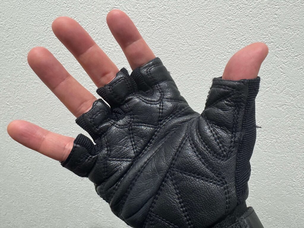 手のひら部分はレザーを使用しており、握りやすくて、安っぽい擦り切れるような感じはありません。