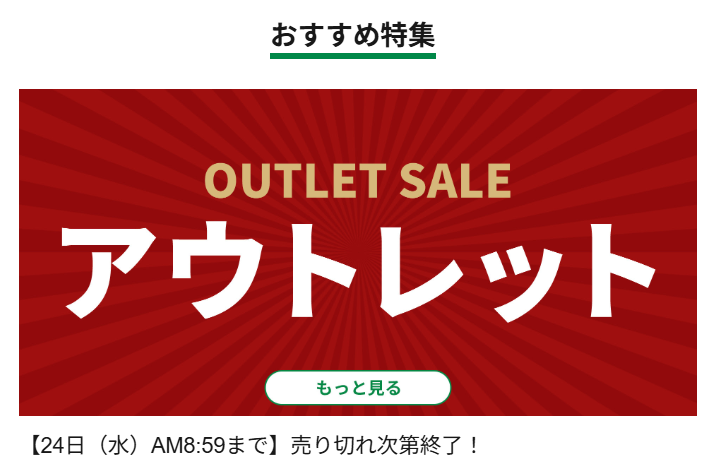 賞味期限が近い商品や、パッケージ変更品などがアウトレット価格で販売されることがあります。