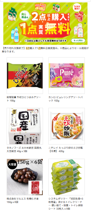 これが本当にお得で、普段使いの調味料や日用品がキャンペーン対象になっていることも多いです。まとめ買いするなら、このキャンペーンを活用しない手はありません。